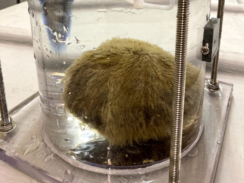 Pictured: Attached algae, or periphyton, covers a rock that is part of a UC Davis lab experiment investigating the impacts of climate-drive warming and nutrient inputs on the algae. Image by Nick Framsted, UC Davis.
