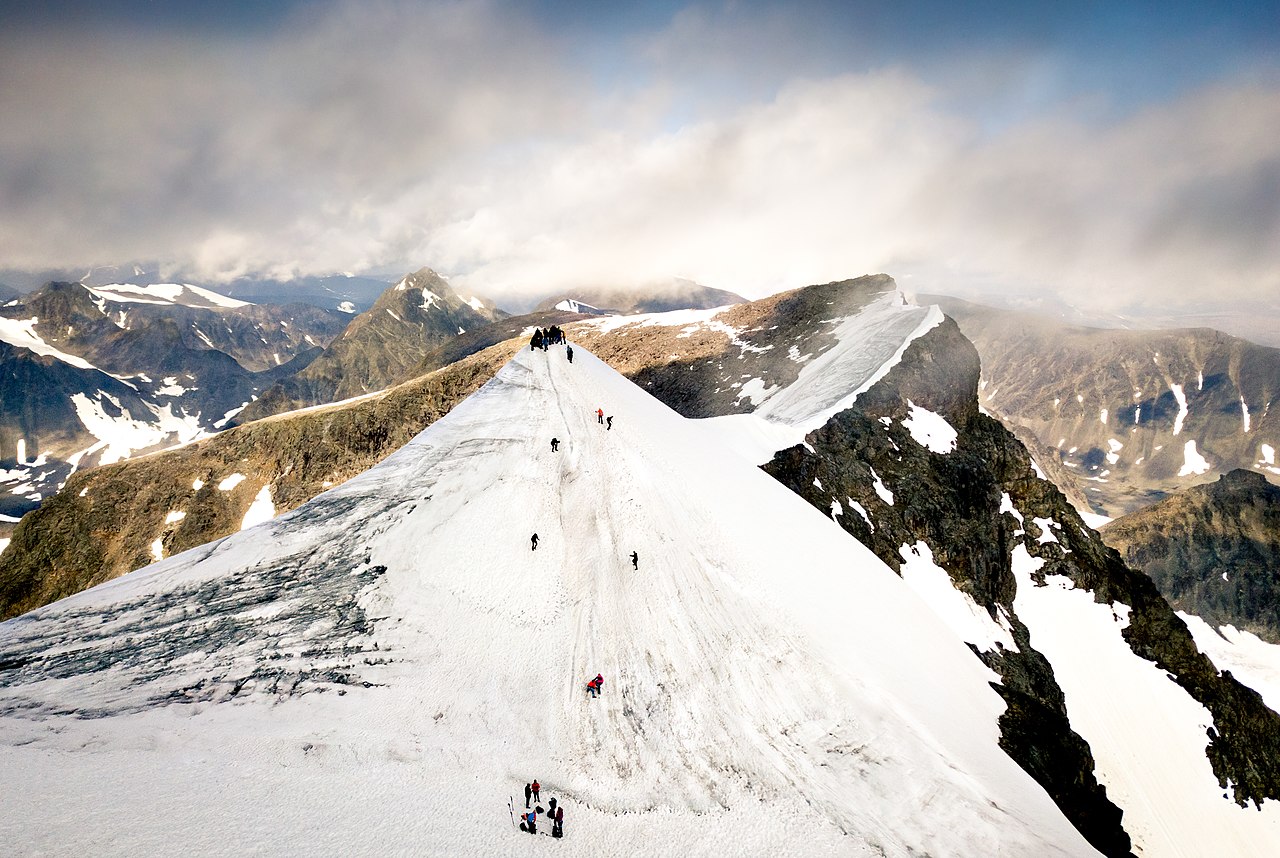 In August 2018, researchers at Tarfala Research Station were – for the first time – able to establish that the southern peak of Kebnekaise was lower than the northern peak on the same mountain. Sweden officially had a new highest point: Kebnekaise’s northern peak with a height of 2 096,8 meters above sea level. The highest point of the northern peak consists of mountains and is thus stable. This development means that the northern peak, in the long run, will become Sweden’s highest point all year round.