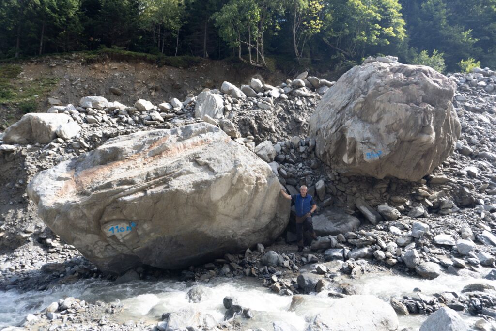 A number of subsequent debris flows have occurred at Rotlouwi, while a little further downstream from Guttannen at Spreitgraben – a steep channel situated on the northeastern flank of the Ritzlihorn mountain – approximately twenty debris flows have occurred since July 2009. These flows have resulted in a cumulative volume of 700,000 cubic meters of material being deposited into the Aare River, with boulders of over 700 tonnes being dislodged from the mountainside.